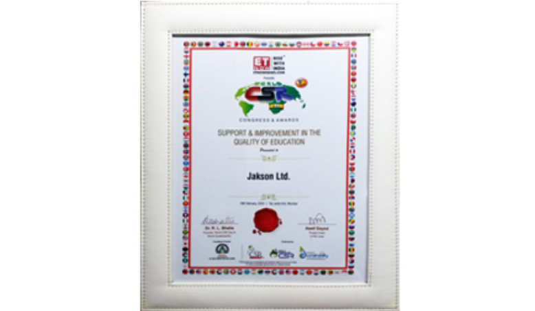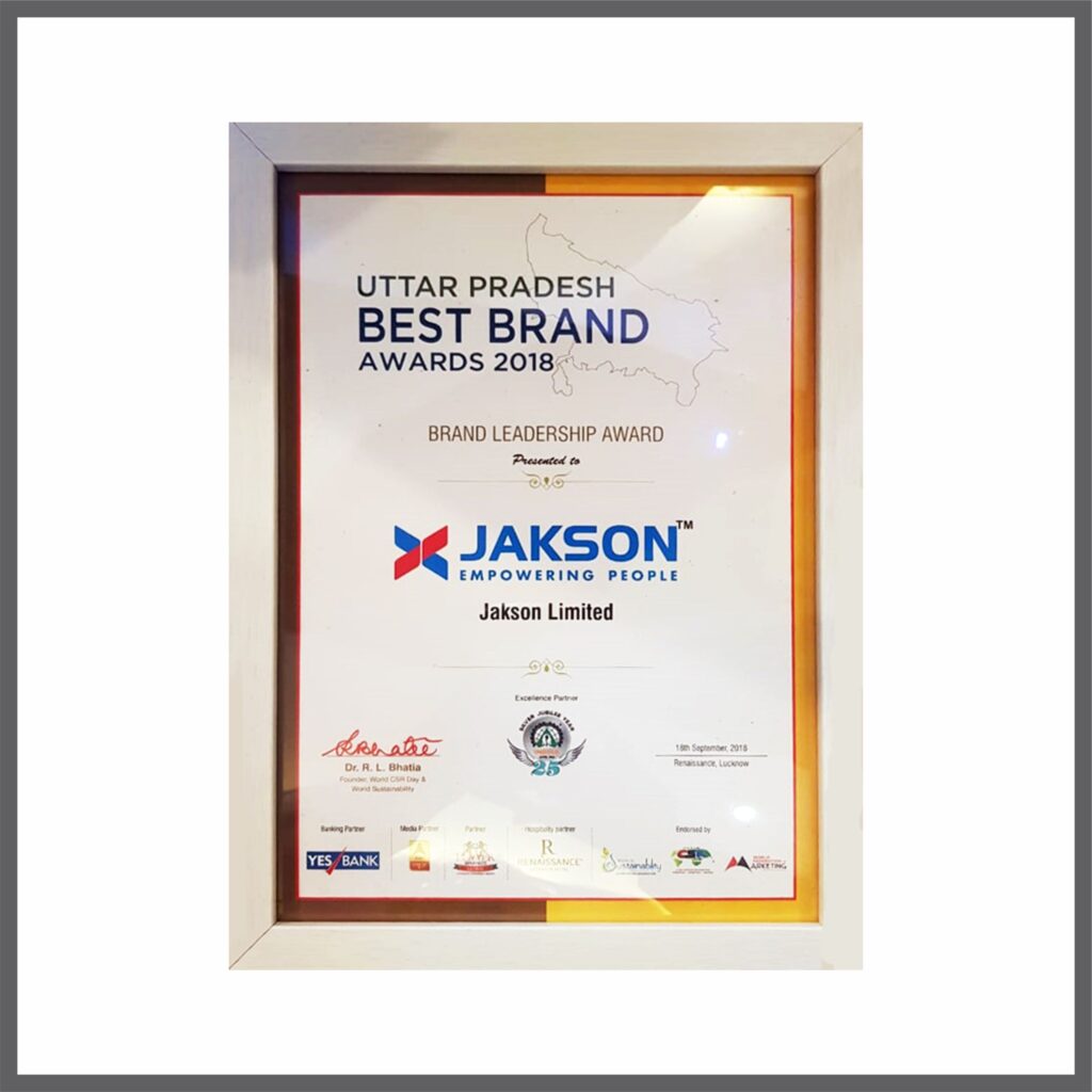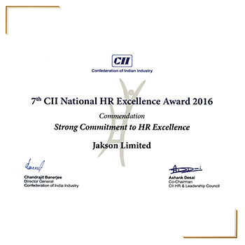 The Confederation of Indian Industry (CII) presented Jakson with the Customer Obsession Award for Active Customer Engagement in the manufacturing sector at an event held in Delhi.