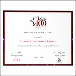 The CFO 100 Awards 2018 is a prestigious recognition given to Chief Financial Officers who have made outstanding contributions to their organization’s financial management. Mr. Pushpendra Kumar Bansal, the Chief Financial Officer of Jakson Group, has been awarded this honor for his remarkable contribution to Corporate Tax Management.
