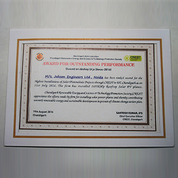 The company was honored with the CREST Solar EPC Award in 2016 for its exceptional work in installing solar photovoltaic projects, which was recognized as an outstanding performance.