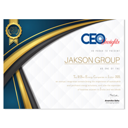 We are pleased to share that Jakson Group has been acknowledged as one of the Top 10 Energy Companies in India for the year 2020 by CEO Insights Magazine. This recognition demonstrates our robust credentials and our long-standing 70-year heritage. The November issue of the magazine features an informative interview with Mr. Sameer Gupta, CMD, Jakson Group, where he discusses our journey, businesses, accomplishments, and future growth plans. You can read the article by clicking on this link.