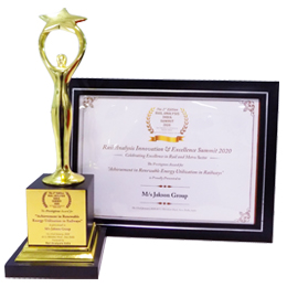 Renewable Energy Utilization in Railways’ Award at the Annual Rail Analysis Innovation & Excellence Summit 2020, held in New Delhi. – January 2020