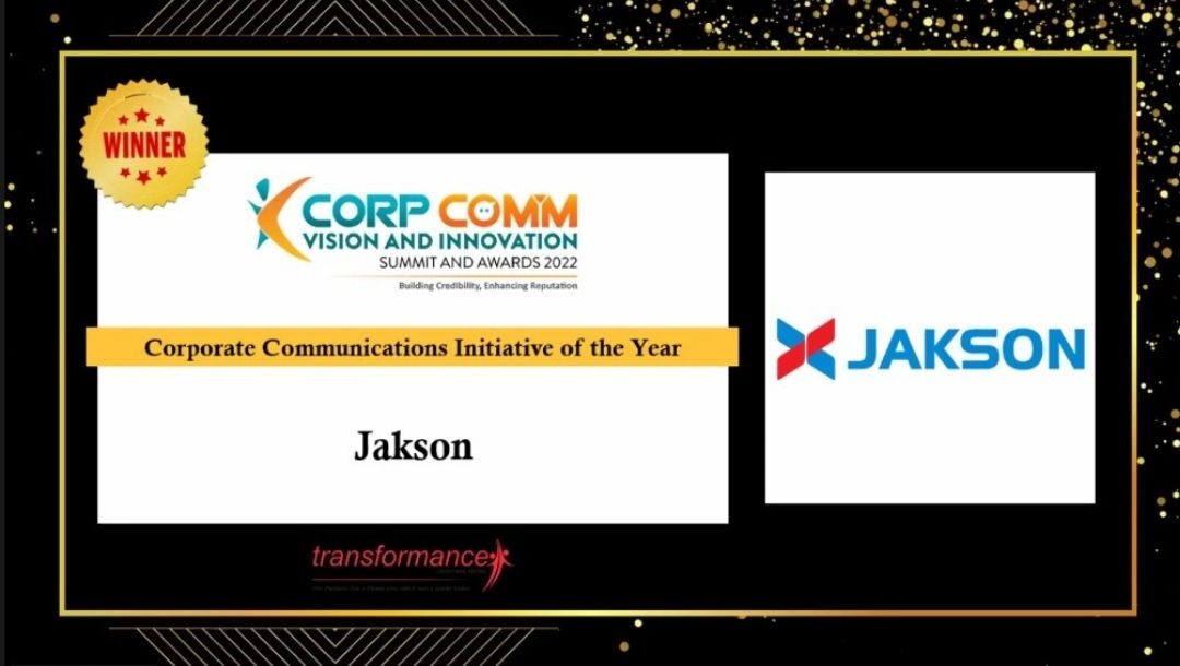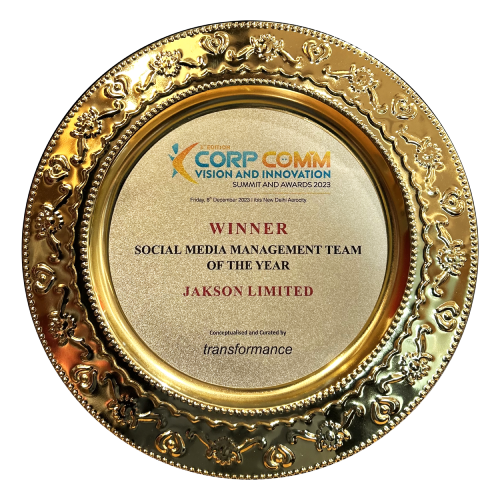 Jakson Limited has been honoured with the prestigious ‘Social Media Management Team of the Year’ Award at the 3rd Corp Comm Vision and Innovation Summit & Awards 2023. It files our passion and excellence for positioning Jakson as the leader in energy and infra sector and reaching our stakeholders though media networks.