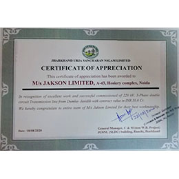 Client appreciation award from Jharkhand Urja Sancharan Nigam Limited - August 2020