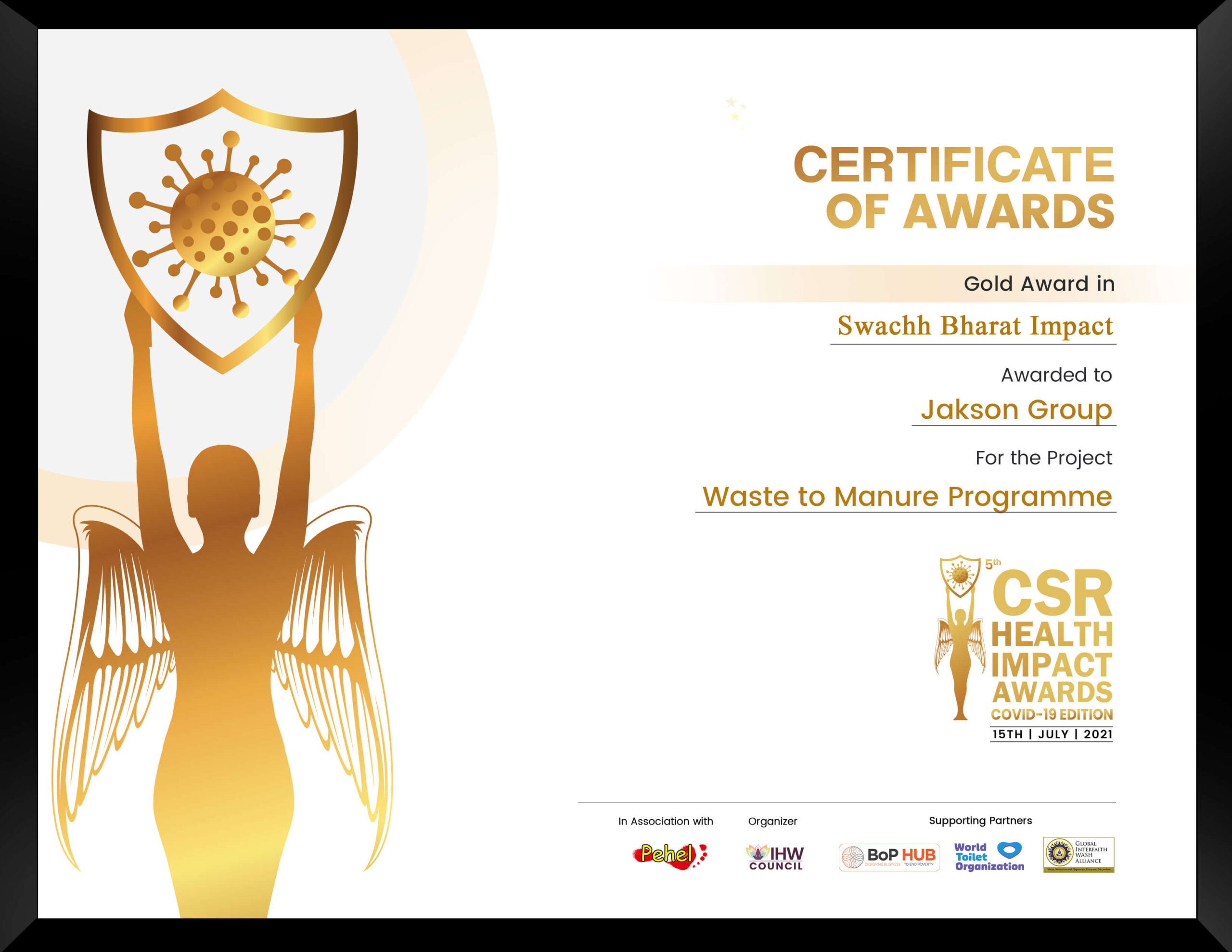 The Waste to Manure Project, initiated by Jakson Group to promote household waste segregation at the source in Anand Vihar, New Delhi, has been recognized with the Gold Award in “Swachh Bharat Impact.” We thank our partners, volunteers, and community for their commitment and cooperation towards this project.