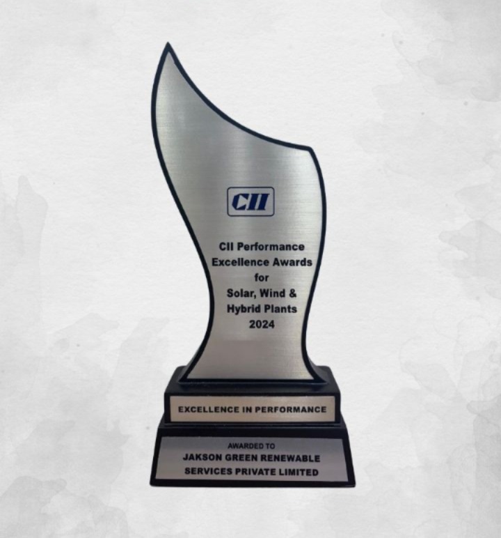 Jakson Green has been recognized for its excellence and performance in the Ground Mounted Solar category at the Performance Excellence Awards 2024, organized by CII, for Solar, Wind, and Hybrid Plants.