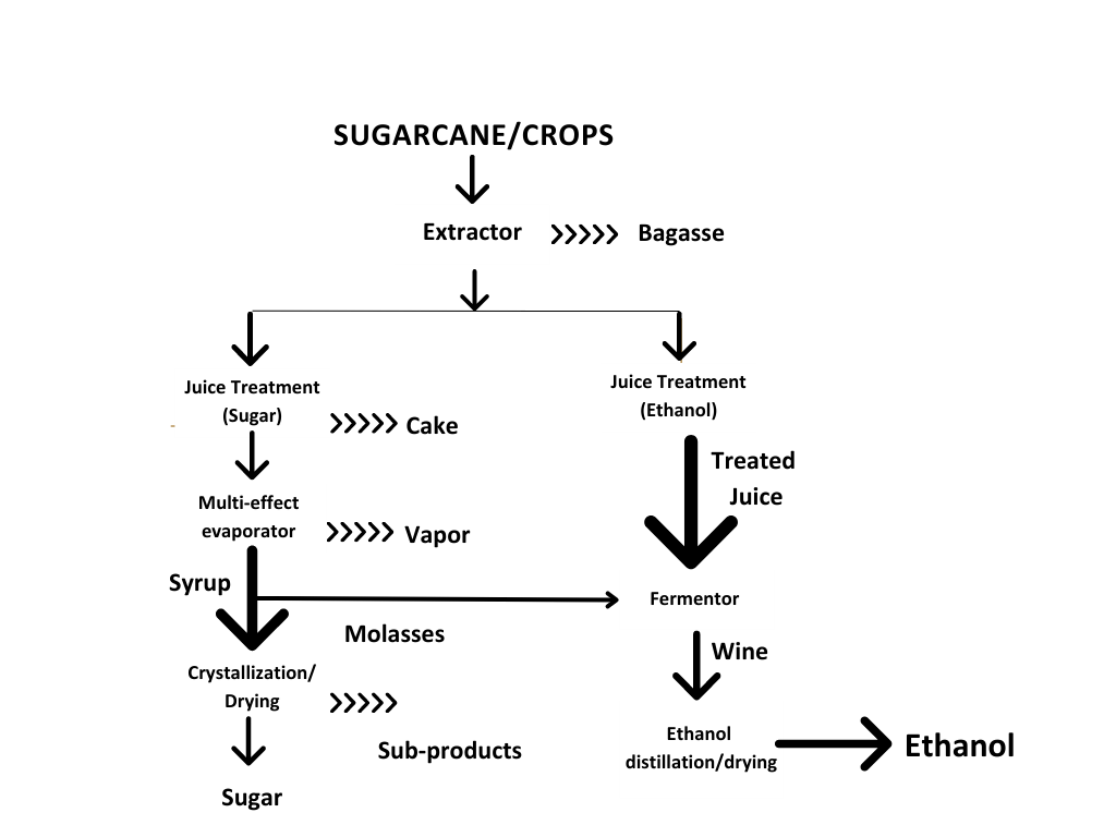 To make ethanol fuel from sugarcane or any other crop, you need to squeeze out the juice, ferment it, and distil it.